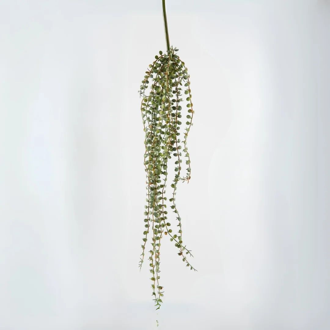 Deze kunstplant is ideaal om hoog te plaatsen, bijvoorbeeld in een wandhanger, op een kast of in een pot aan het plafond, zodat de stengels mooi naar beneden kunnen vallen. Perfect voor een moderne, botanische of bohemian stijl en altijd blijvend fris en groen.
