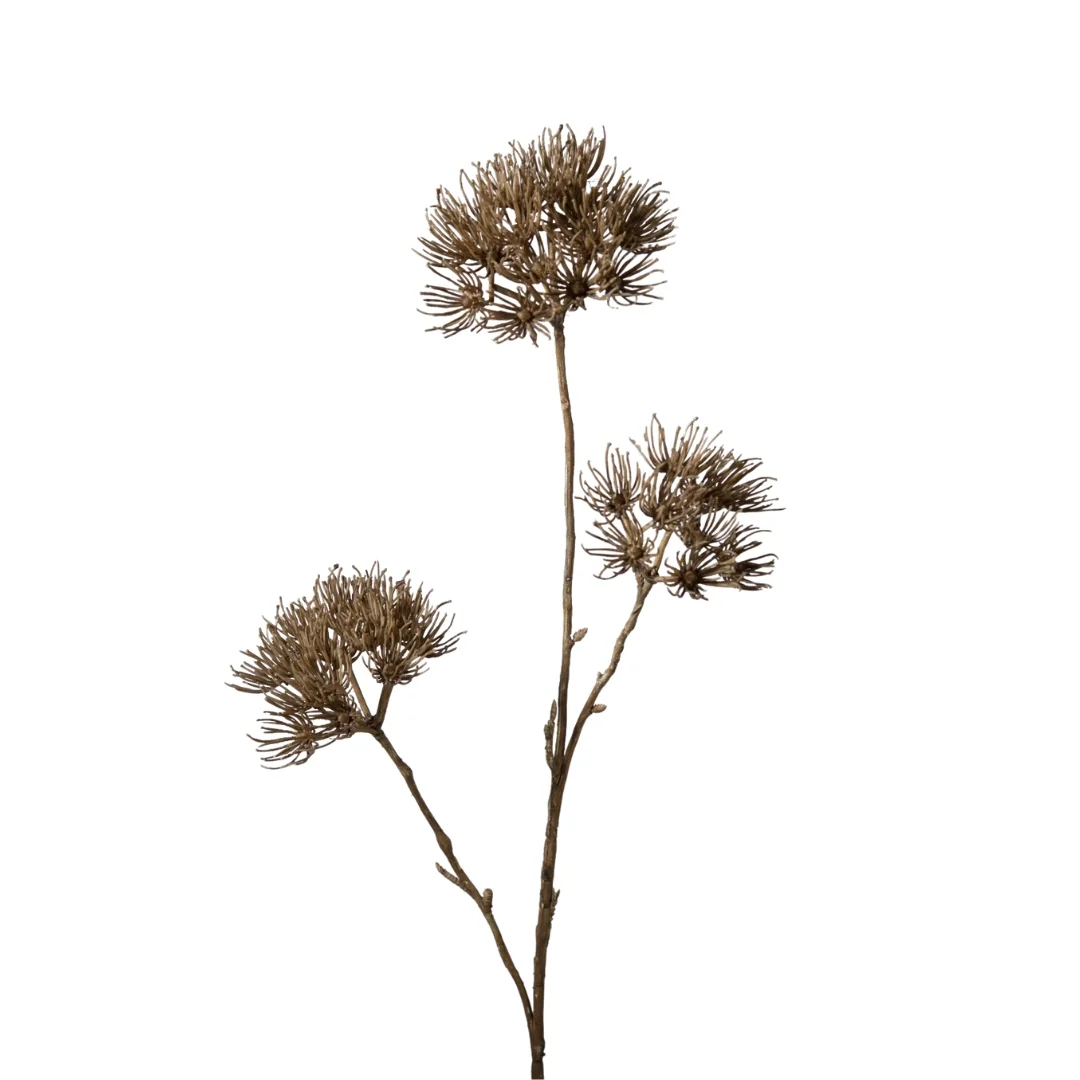 Geef je interieur een stoer en natuurlijk accent met deze kunsttak van de berenklauw. De drie robuuste bloemschermen in warme bruintinten brengen direct structuur en karakter in elk bloemstuk of decoratief arrangement. Dankzij de natuurgetrouwe details heeft de tak een realistische uitstraling, maar blijft hij altijd mooi zonder verzorging.